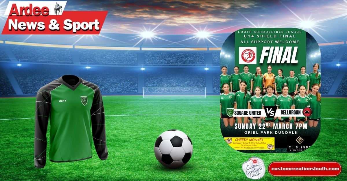 Excitement is building in the local football community as Ardee Square Utd’s Under-14 Louth Schoolgirls team prepare for their long-awaited cup final under the lights at Oriel Park this weekend.