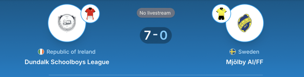 Final Score: Dundalk Schoolboys League 7 – 0 Mjölby AI/FF
